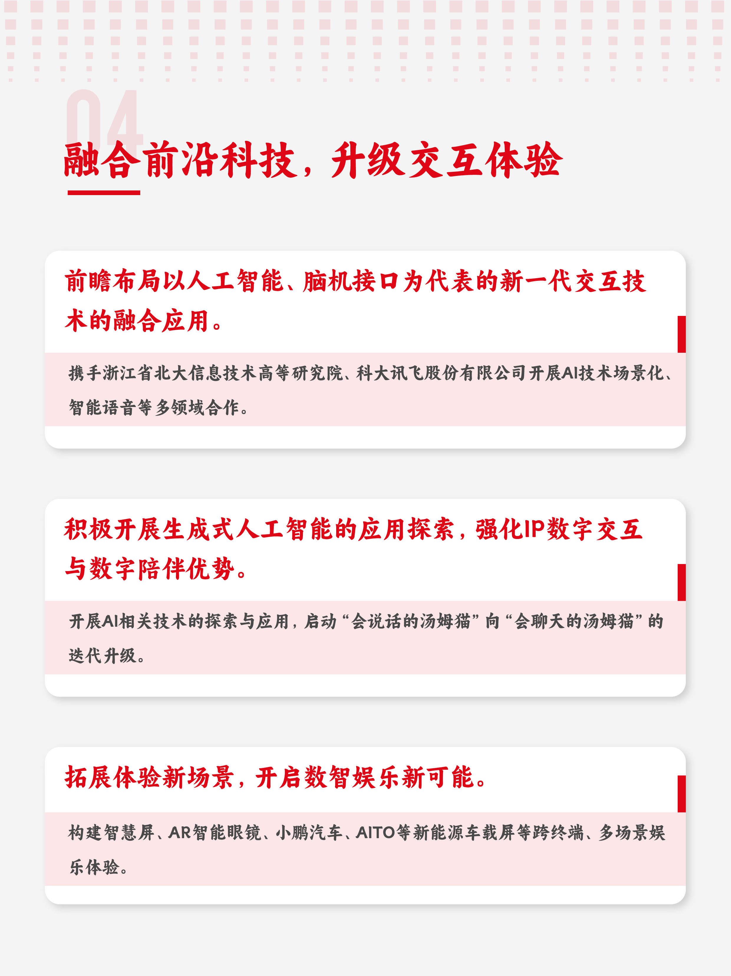 ☞ 深化IP数字交互与情感陪伴特征,融合人工智能科技,拓展新型交互体验。